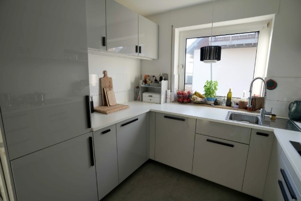 Die Küche ist ausgestattet mit einem Induktionskochfeld, einer Mikrowelle, einem Backofen, einem Gefrierschrank, einem eingebauten Kühlschrank, sowie einem zweiten Zusatzkühlschrank und einer Spülmaschine. Außerdem stehen eine Monsieur Cuisine Connect Küchenmaschine, ein Entsafter, ein Slow Cooker sowie weitere kleine Küchengeräte, beispielsweise zum Backen, zur Verfügung.