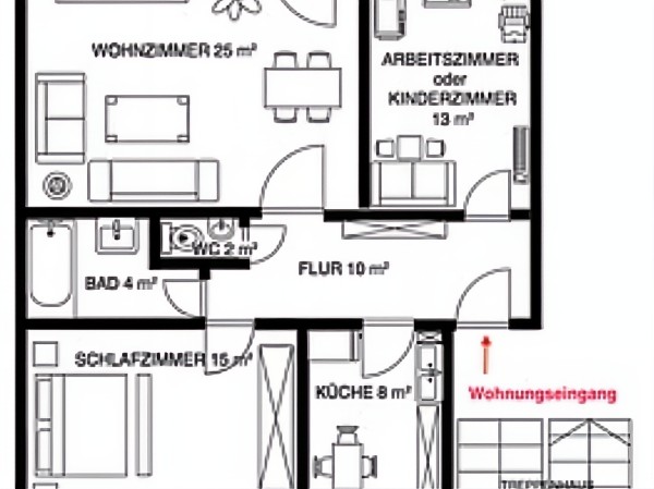 Die Wohnung eignet sich ideal für Fachkräfte aus dem In- und Ausland oder junge Familien mit einem Kind, die ein gepflegtes und ruhiges Wohnumfeld suchen.