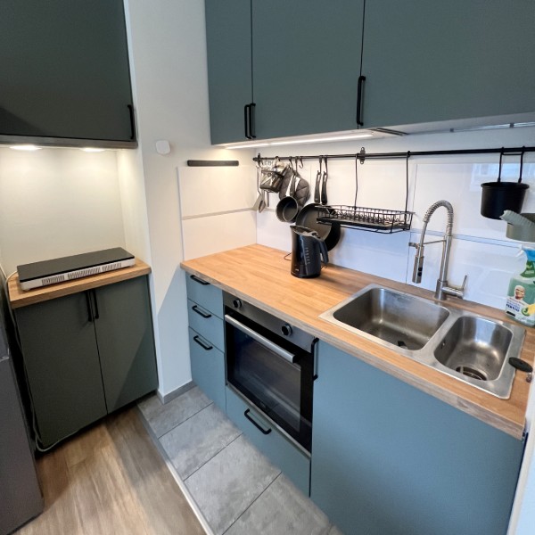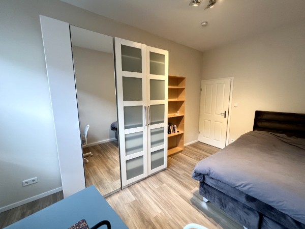 | Objektbeschreibung, Lage und spezielle Bedingungen: | Objektbeschreibung: Diese geschmackvoll eingerichtete 2-Zimmer-Wohnung in der Brunnenstraße 18 in Düsseldorf Unterbilk/Bilk, überzeugt durch ihren modernen Stil, ihre ruhige Lage und den schönen Blick in den großen Innenhof. Description Ausstattung: Voll möbliert – einziehen und wohlfühlen Features The apartment includes everything needed for daily life – from kitchenware to linens – and offers immediate living comfort. Lage: Die Wohnung befindet sich in der Brunnenstraße 18, im lebendigen und gleichzeitig angenehm ruhigen Stadtteil Bilk. Location Sonstiges: Mindestmietdauer: 1 Jahr |